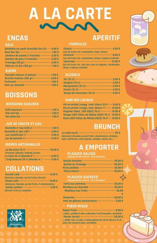Carte encas, boissons et à emporter
